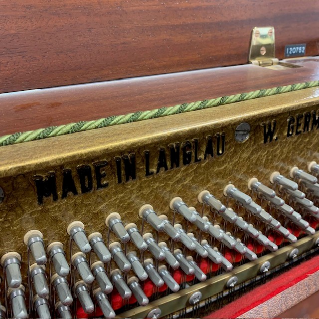 Le Hoffmann Langlau 114 est un piano droit de haute qualité conçu en Allemagne dans la fameuse usine Langlau .Avec une hauteur de 114 cm, il offre une excellente projection sonore et une large palette de nuances. Ce modèle est apprécié pour sa robustesse, sa précision mécanique, et son élégance, en faisant un choix idéal pour les pianistes exigeants.